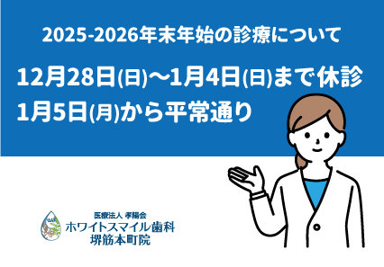 2025-2026年末年始の診療について | ホワイトスマイル歯科・矯正歯科|本町・堺筋本町にある歯医者|駅近で便利