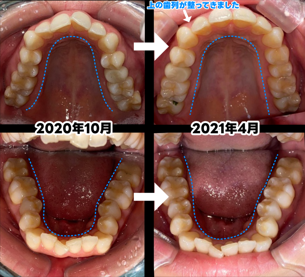 アライナー装着から7ヶ月が経過し、歯並びのアーチがきれいに仕上がってきました。